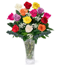 Our rainbow of long stem roses is an elegant surprise for someone who brings color to your world. Beautifully arranged by our expert florists with lush greenery inside a classic glass vase, ready to delight the people you care about for big celebrations and every “just because” moment in between.