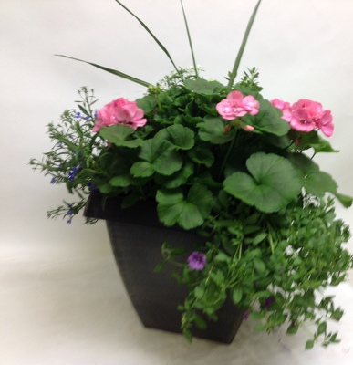 Send mom a lasting gift for summer with this lush 14.5" planter filled with blooming geraniums. Color of plants will vary**