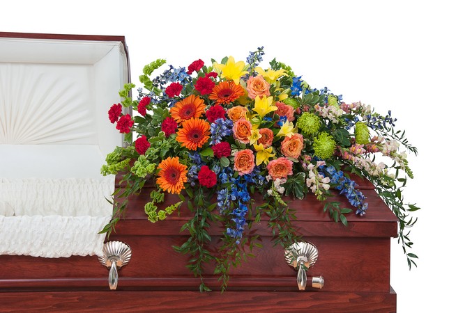 A combination of bright color blooms to celebrate the life of your loved one. Approximately 44" wide 36" deep