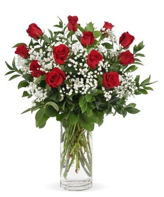 Dozen Red Roses with babys breath is a flower gift for dreamers and lovers; a romantic arrangement full of magic and magnificence. Featuring a dozen red roses, accented by baby’s breath and salal, this flower bouquet is the perfect gift for a birthday, anniversary, or just because the moment is right.
